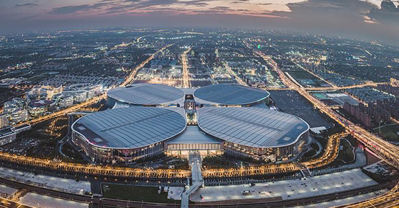 項(xiàng)目概述: 國(guó)家會(huì)展中心形狀如四葉草,4個(gè)展館猶如四個(gè)葉片匯聚于中央廣場(chǎng),13個(gè)展廳單個(gè)面積近3萬(wàn)平方米,相當(dāng)于4個(gè)標(biāo)準(zhǔn)足球場(chǎng)。其中3個(gè)單層“無(wú)柱展廳”凈高達(dá)34米,穹頂跨度達(dá)108米,堪稱會(huì)展“巨無(wú)霸”。而位于中央的商業(yè)廣場(chǎng)則相當(dāng)于“四葉草之蕊”,匯集美食、電影院、劇場(chǎng)、公共服務(wù)等多種功能。綻放的“四葉草”已經(jīng)成為了上海的新地標(biāo)。